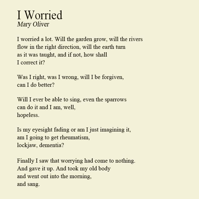 The universe is wanting to communicate something with you. It wants to take you somewhere very specific (to your ultimate destiny, which is PEACE and wisdom and wholeness) but your worrying is a kind of crazy emotional static that prevents you from hearing the messages.