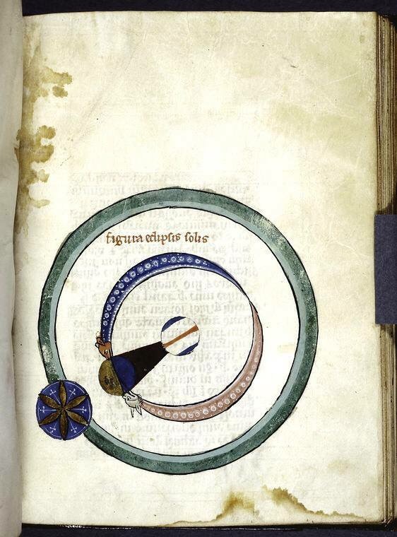 Diagram of solar eclipse from a 13th Century Latin manuscript.
